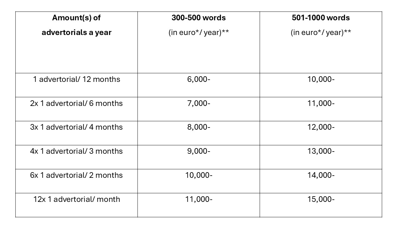 FPM only offers advertorial space . The advertiser ensures that the advertorial(s) meet(s) all the FPM requirements to get published on the FPM website. On the front page the company/organisation logo of the advertiser is published for a year as a link to the advertorial. By publishing the company/organisation logo on the front page of the FPM website, visitors of the FPM website get an overview of the companies and organisations that support FPM’s mission to create the opportunity for people to make free choices so that people have the possibility to live in connection with themselves, each other and the natural environment. Advertisers can renew and modify the contract with FPM annually. More info? Send an email to Free People Media.